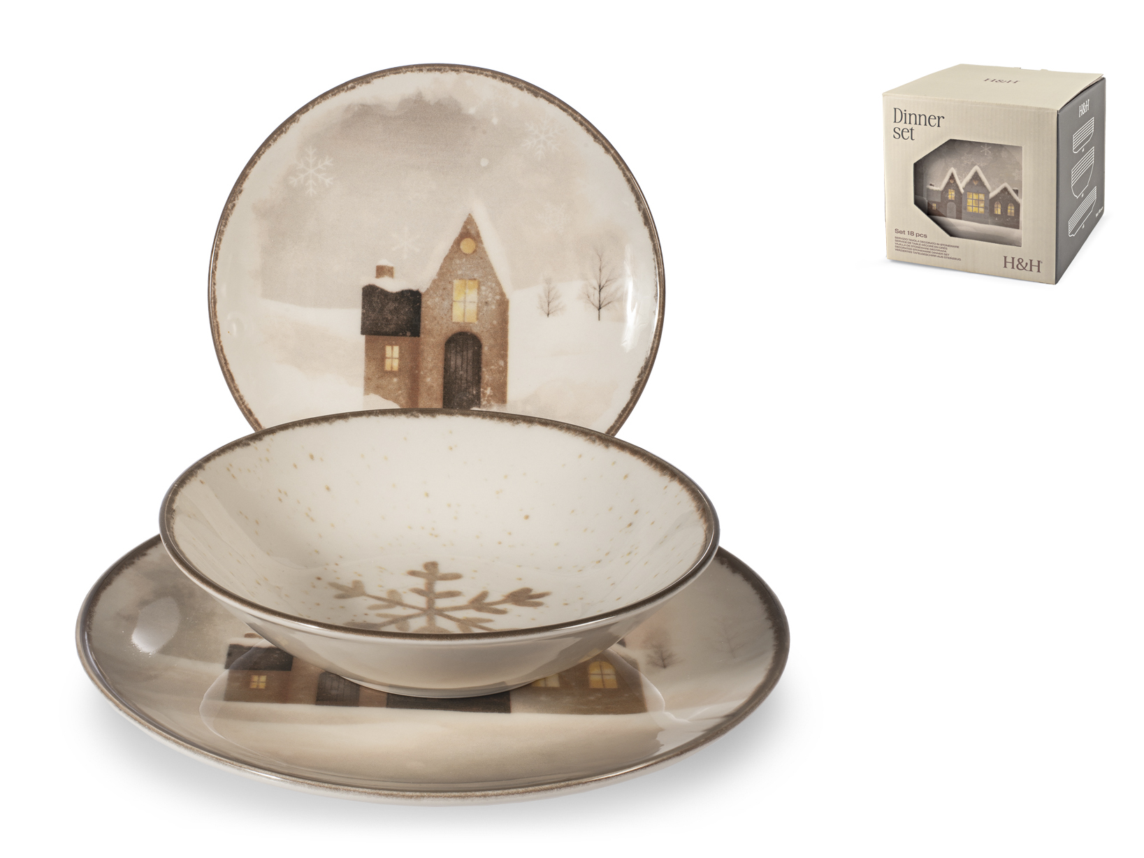 H&H Servizio Tavola Natalizio 18 Pezzi Cinnamon Glow In Stoneware