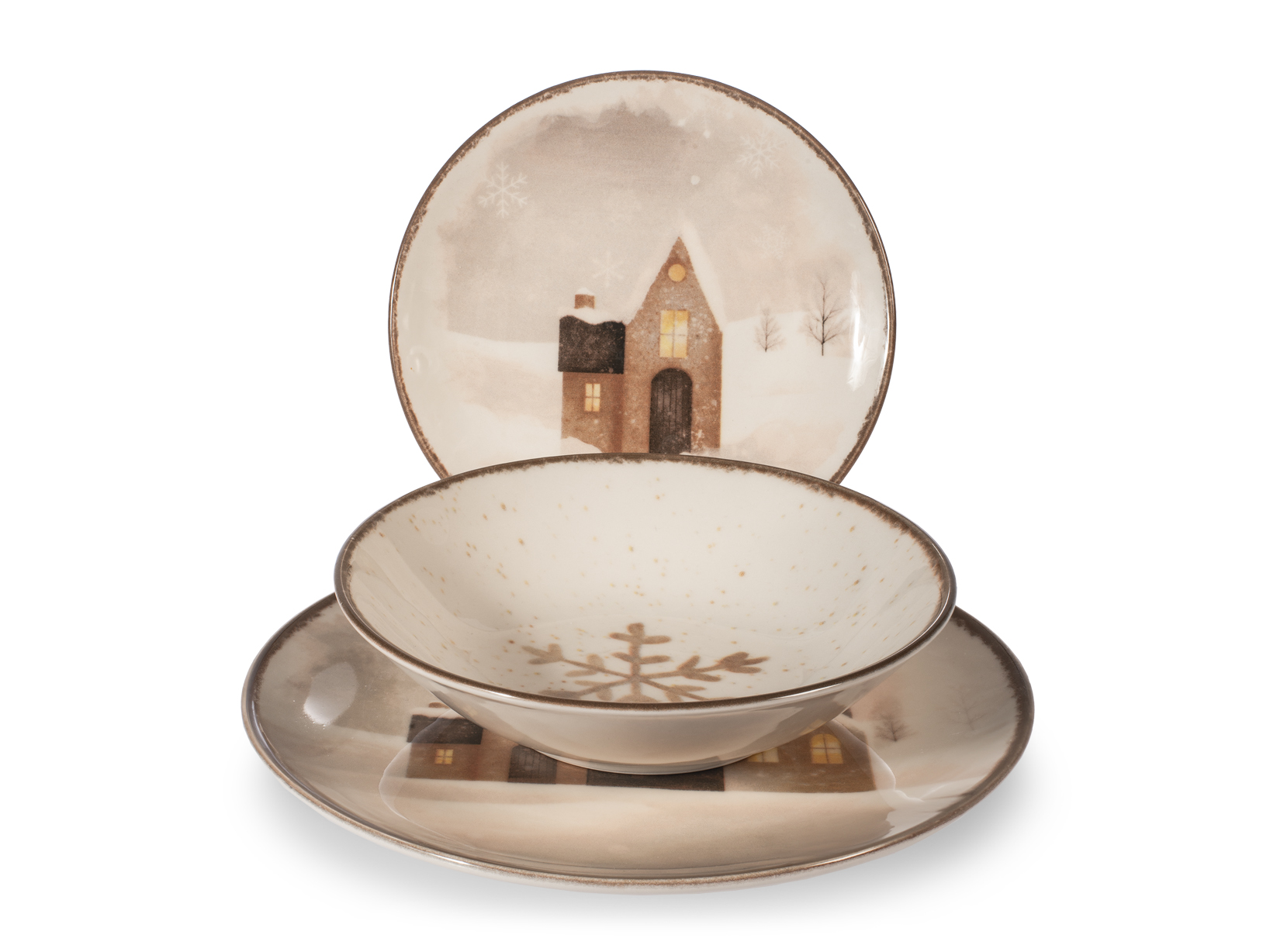 Porta a tavola il calore e la magia dell’inverno con il servizio piatti 18 pezzi Cinnamon Glow in stoneware. Il decoro illustrato raffigura un incantevole villaggio innevato, dove le casette illuminate riscaldano lo sguardo e l’anima, evocando dolci ricordi d’infanzia e un’atmosfera di convivialità. Il set comprende 6 piatti piani da cm 26, 6 piatti fondi da cm 20,5 e 6 piatti frutta da cm 19,5, perfetti per rendere ogni pasto un momento speciale. Idoneo al lavaggio in lavastoviglie e all’uso in forno a microonde, unisce estetica e funzionalità. LINEA CINNAMON,Natale,tavola-di-Natale
