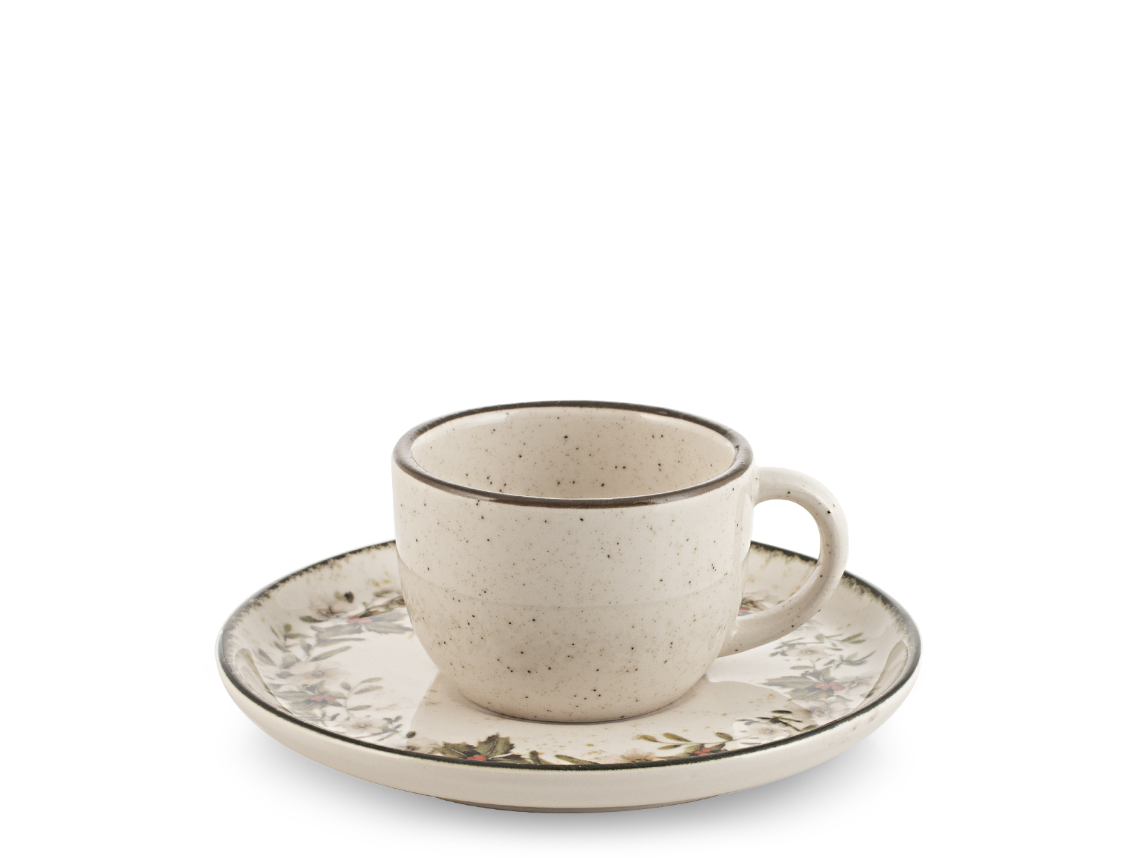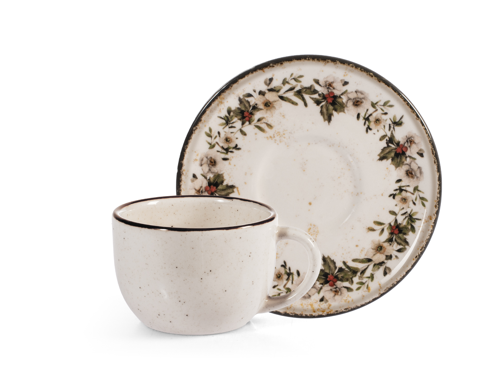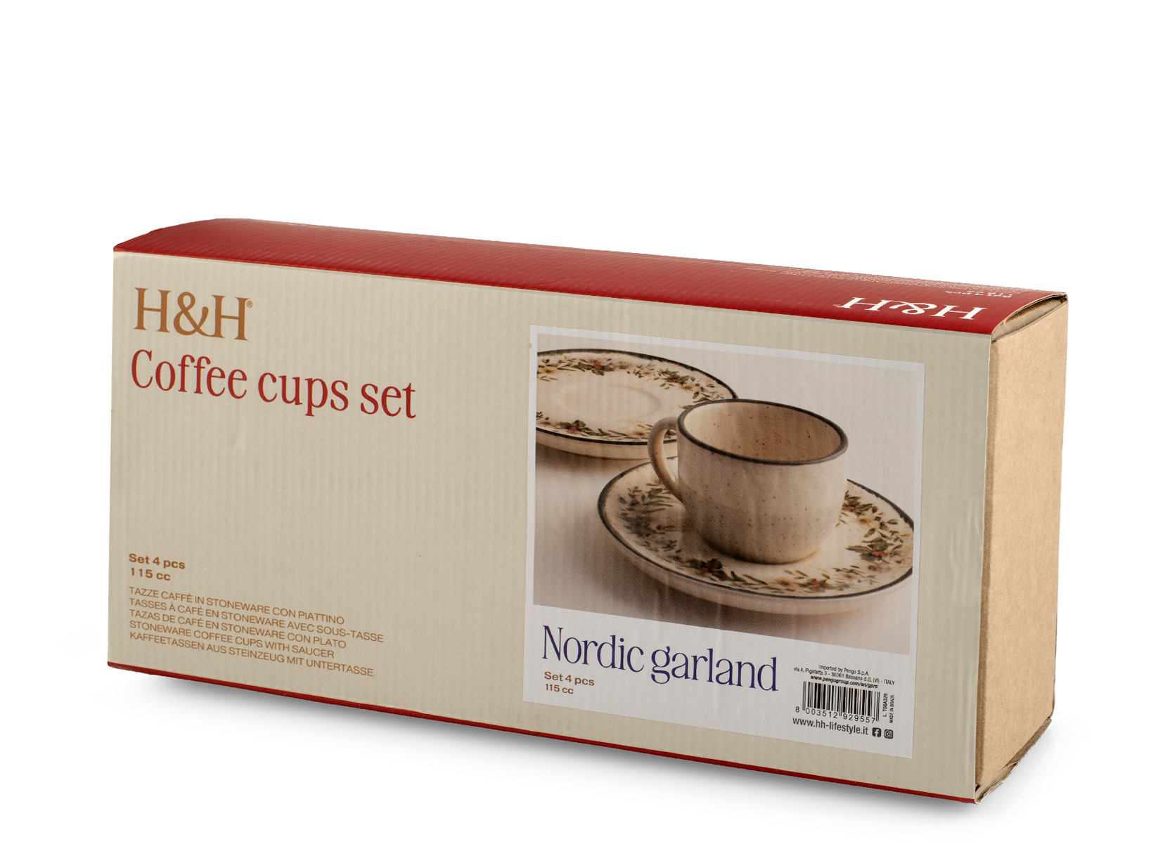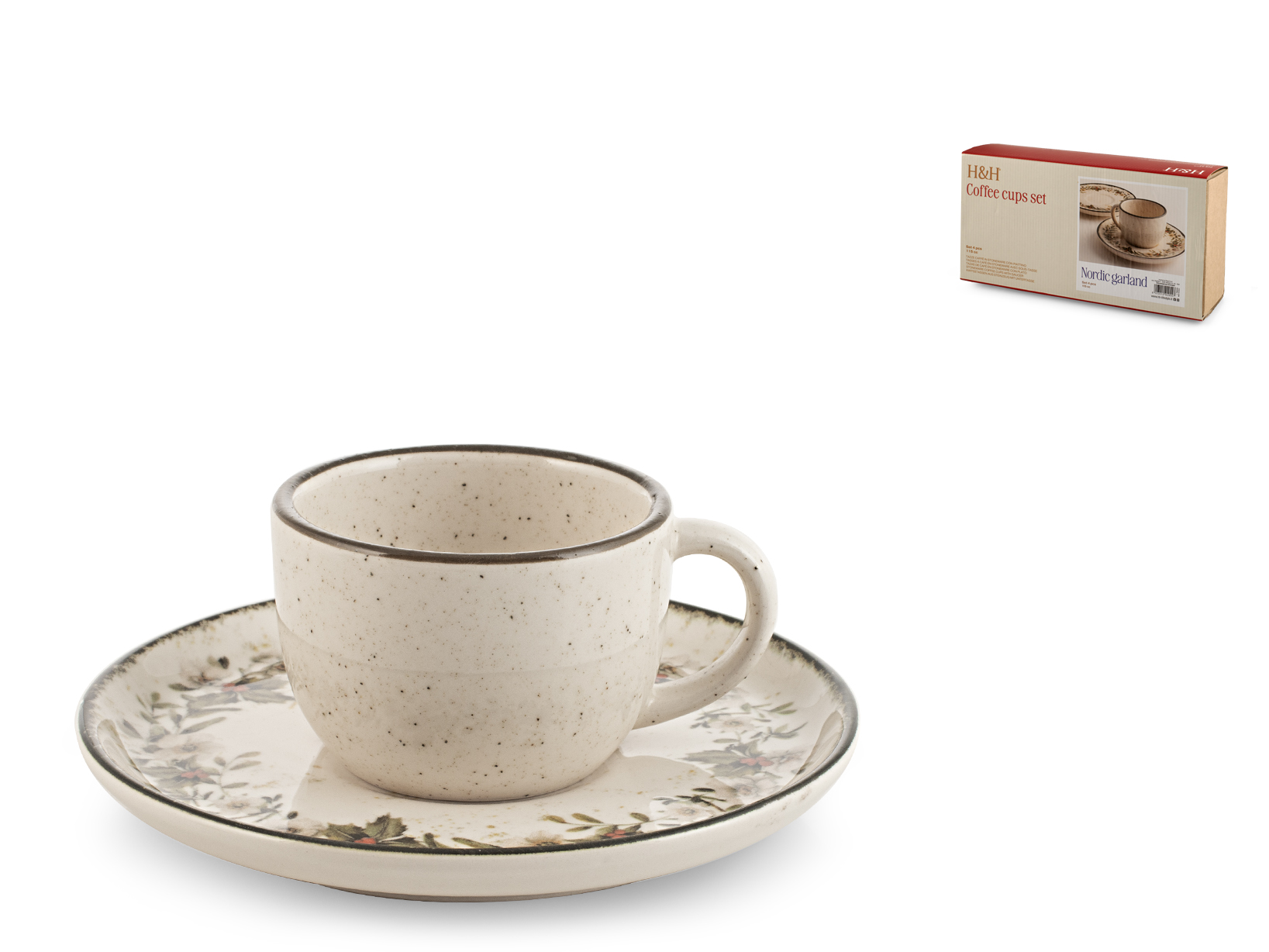 H&H Set 4 Tazze Caffè Nordic Garland Con Piattino In Stoneware Cc 115