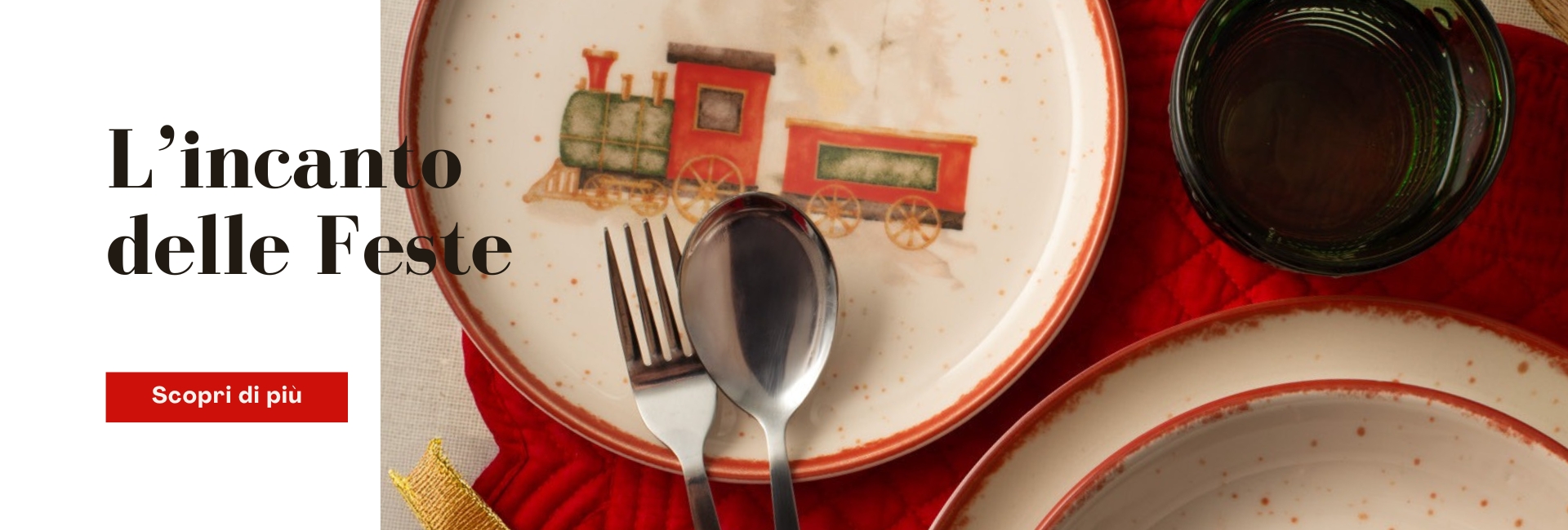 Vivi la magia delle Feste con la nostra collezione natalizia per la tavola. Dai servizi di piatti natalizi ai bicchieri scintillanti, fino a posate e accessori coordinati, ogni dettaglio è pensato per rendere speciale ogni momento: dai pranzi in famiglia alle cene con gli amici.